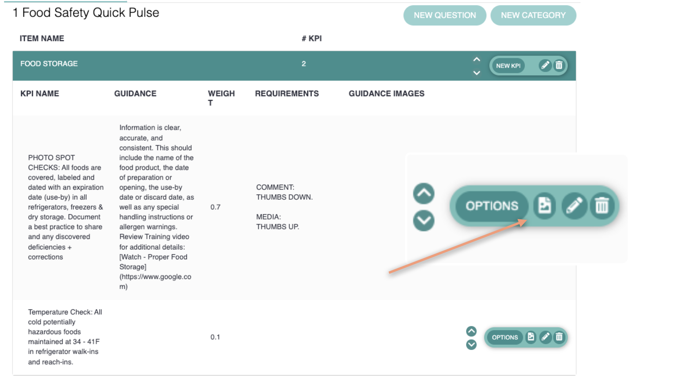 - Expand a category and click the Photo Icon next to the question you'd like to add reference photos to